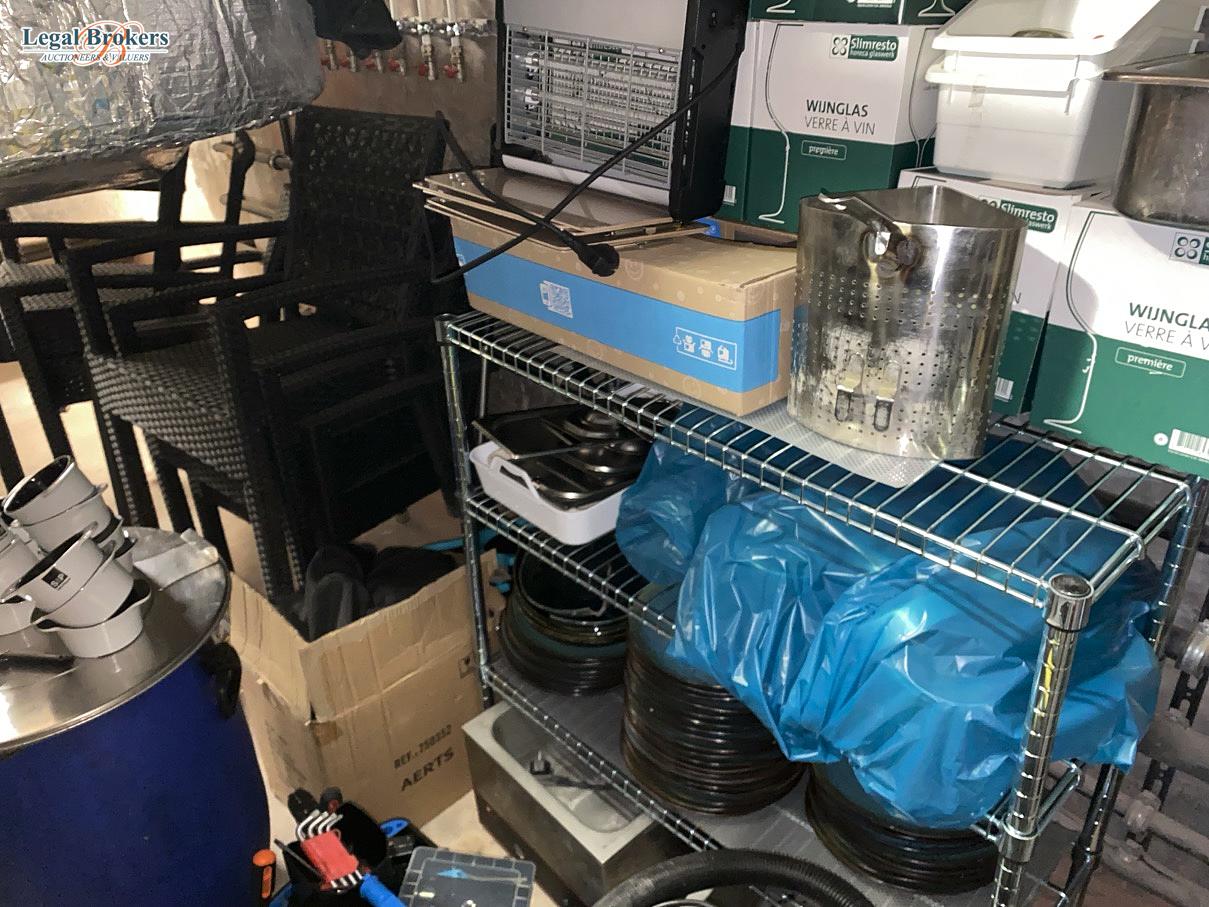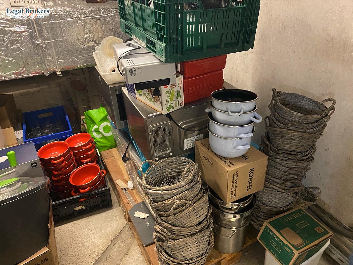 65. Inhoud kelder met diverse potten en pannen + deelmeubilair